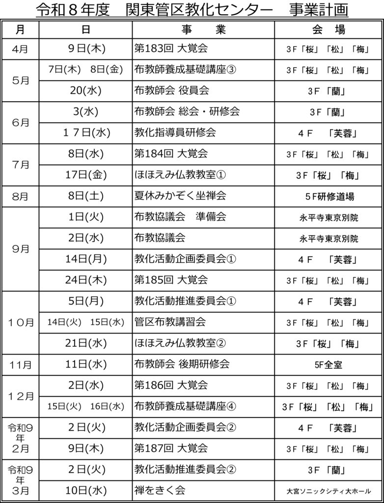 曹洞宗関東管区教化センター 事業計画